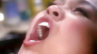 Asian beauty wraps her lips around a immense white cock then gets romped