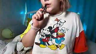 Cute, sexy fairy hoe plays with her gigantic fat tight pussy