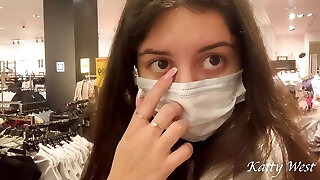 Nailing my pussy with a huge dildo in the public switching room of the mall