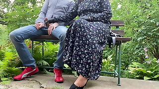Hot Cougar Handjob, Latex Glove, Penis, Outdoors, Glove for Cuckold Hubby