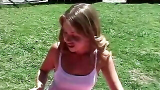 Lusty blonde slut Grace gets ganged banged rough