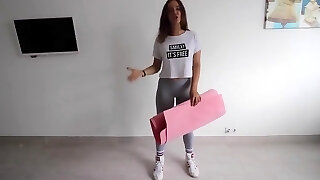 Solo Beauty Riding Dildo In Yoga Trousers With Hottest Ass