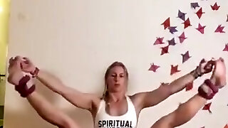 Cougar In Ponytails Showing Off Her Ultimate Skills While Wearing Spandex At Gym