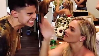 Podcast gets out of control, deep throat, deep facehole and a lot of semen live -Sara Platinum-blonde and Crispasquel