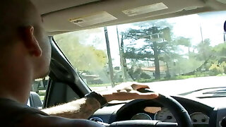 Black-haired girlfriend doesn't notice a massive cock next to her in public