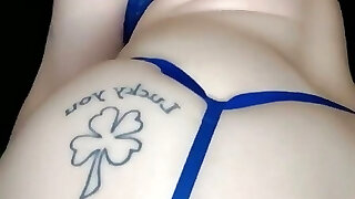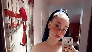 Tattoed bitch with blue hair flirting and playing with pink hole