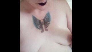 Pretty eyed chunky goth milf smoking in the tub