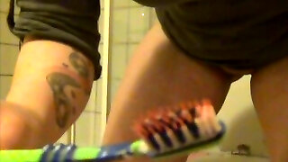 anal sex with creampie and splashing masturbation - wife gets assfucked in bathroom