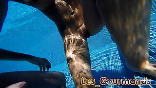 German skinny amateur milf fuck underwater in pool POV