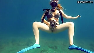 Girl solo masturbates underwater in sea