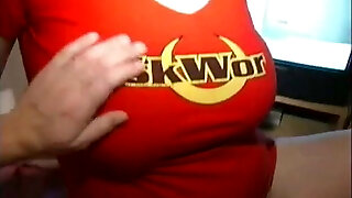 Fat woman Vanessa kisses her own nips