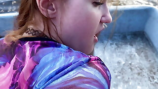 Outdoor hard and sloppy face fuck with ample cum shot!