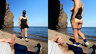 The stranger dazed the exhibitionist on the sea beach - XSanyAny
