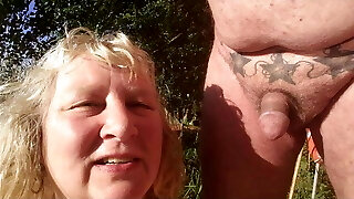 Nudist couple enjoying blowjob at the public beach